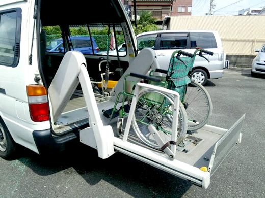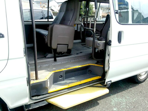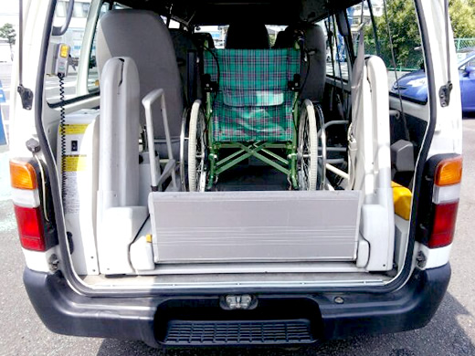 ハイエース100系 ハイエース100系車いすリアリフト 乗車定員車いす2台+8人 8名と車いす2脚の10名乗車です。 車いす固定装置付きです。左側スライドドアには、手すり・ステップが付いております。ステップは電動格納式です。 基本料金(税別) 当日返却 24時間 以降1日 超過2時間毎 7,980円 8,500円 8,500円 1,000円