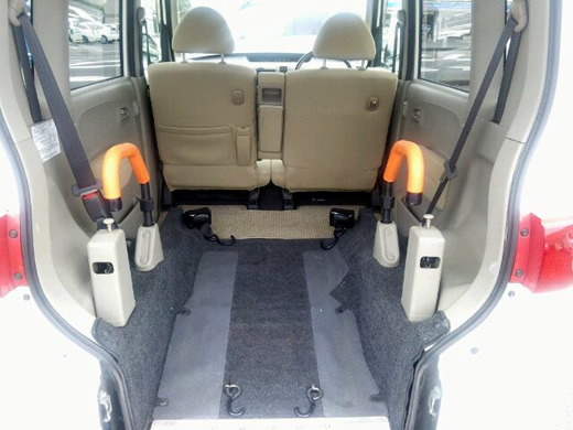 タント タント車いすスロープ 乗車定員車いす1台+2人 2名と車いす1脚の3名乗車です。 車いす電動固定式です。 基本料金(税別) 当日返却 24時間 以降1日 超過2時間毎 3,980円 4,500円 4,500円 1,000円