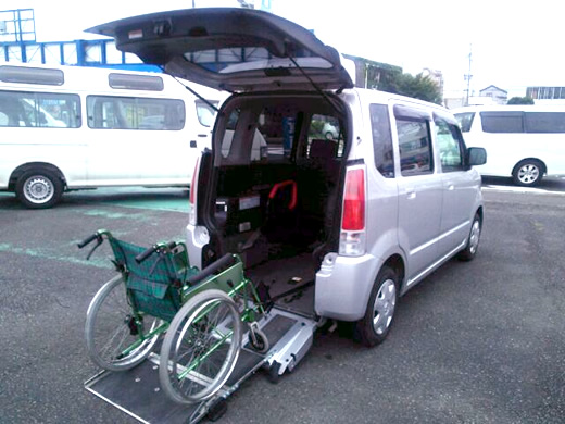 ワゴンR ワゴンR車いすスロープ 乗車定員車いす1台+2人 2名と車いす1脚の3名乗車です。 車いすを使わない場合は、4名乗りになります。スロープ車です。 車いす電動固定式です。 基本料金(税別) 当日返却 24時間 以降1日 超過2時間毎 3,980円 4,500円 4,500円 1,000円